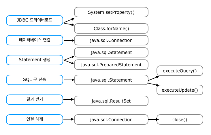자바를 이용한 데이터베이스 접속과 SQL 문장의 실행, 그리고 실행 결과로 얻어진 데이터의 핸들링을 제공하는 방법과 절차에 관한 규약